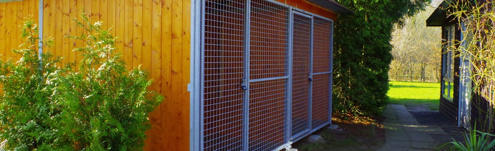 - Der Welpenplatz ist zusätzlich mit beweglichen Zaunelementen in drei Teile eingeteilt,